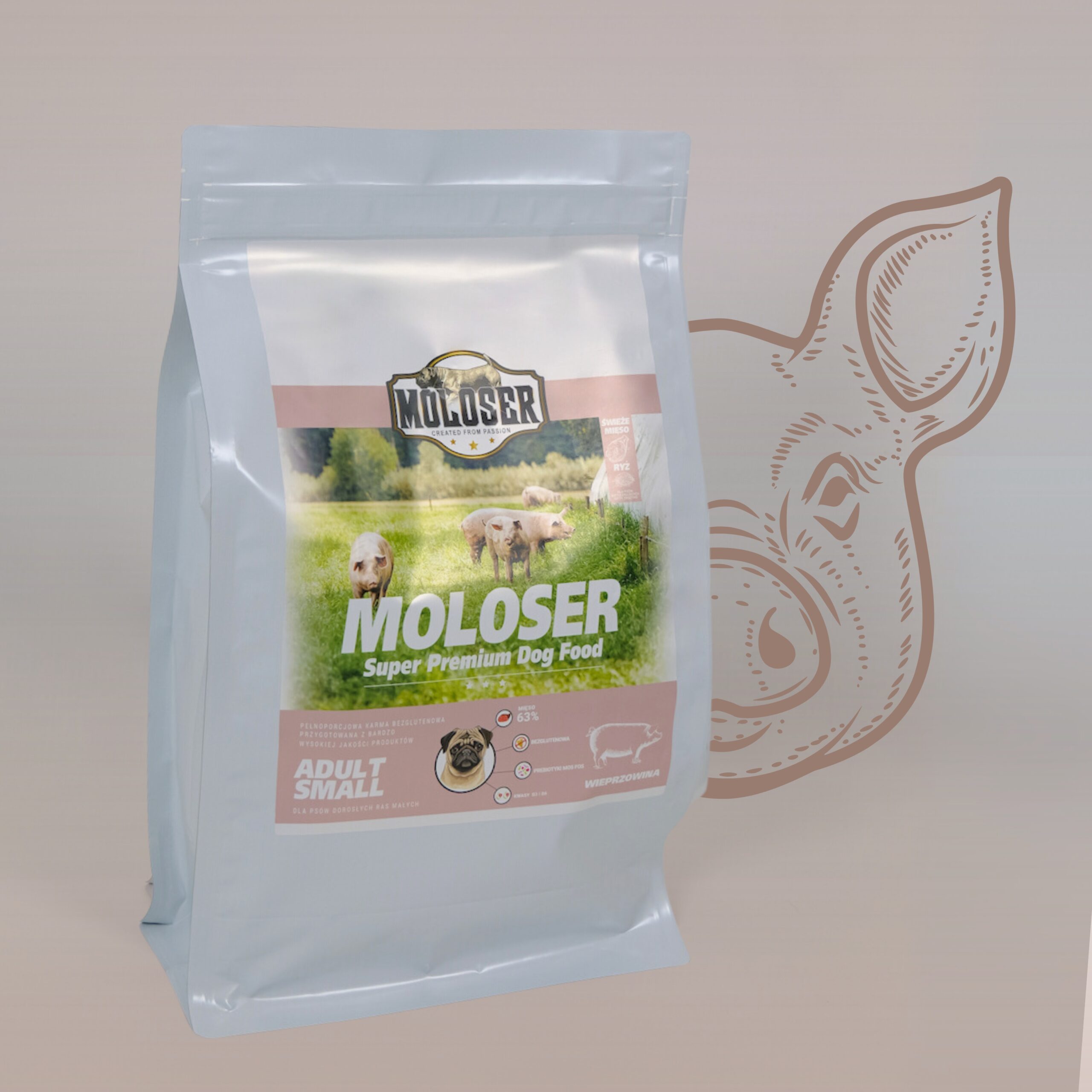 Pełnowartościowe żywienie inspirowane naturą – stworzone z myślą o potrzebach psów ras małych i średnich. Nasza bezglutenowa karma łączy wysoką zawartość mięsa (aż 63%) z lekkostrawnym ryżem i starannie dobranymi dodatkami funkcjonalnymi. Głównym źródłem białka jest świeże mięso wieprzowe (20%), wzbogacone o suszone białko zwierzęce, dzięki czemu każdy kęs dostarcza energii i wspiera masę mięśniową psa.
